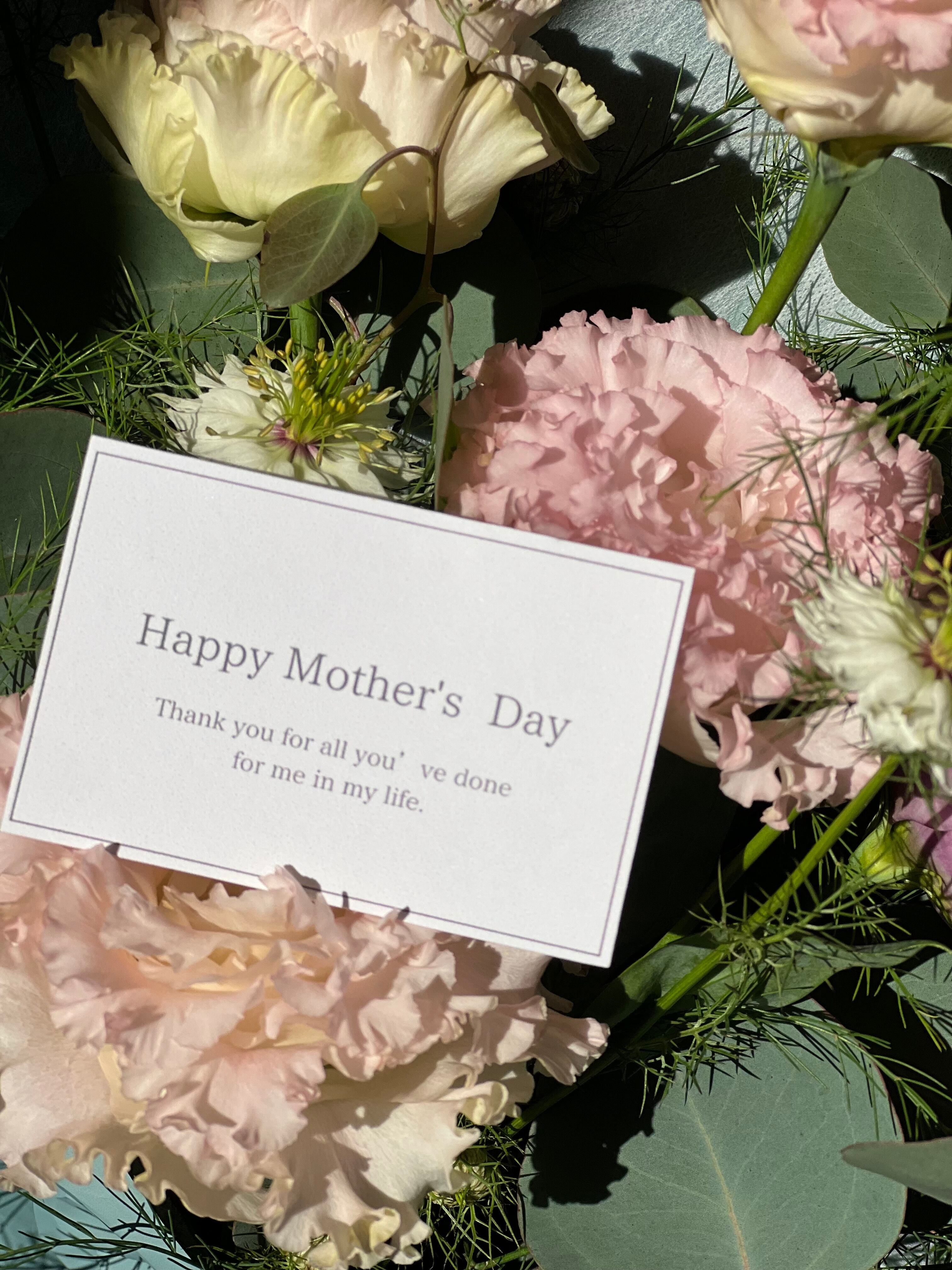 「happy mothers day」のシンプルなカード付き。